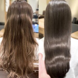 INKALAMI is a patented technology that uses reactive keratin to restore the internal health of hair! TOKIO treatment’s patented technology “INKALAMI” is a chemical reaction (cohesive bonding reaction) that powerfully repairs hair damage from the inside by allowing special keratin ingredients with reactive properties to enter the hair and gather and grow inside the hair.